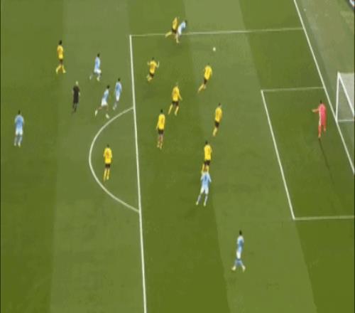 比赛第22分钟,赖因德斯送出直塞,太子福登停球、转身、拔脚,一气呵成,皮球直奔死角,曼城1-0领先。