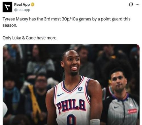 凭借这样的表现,马克西本赛季已经3次单场至少交出30分10助,高居控卫位置第三,仅次于东契奇7次与坎宁安6次。
